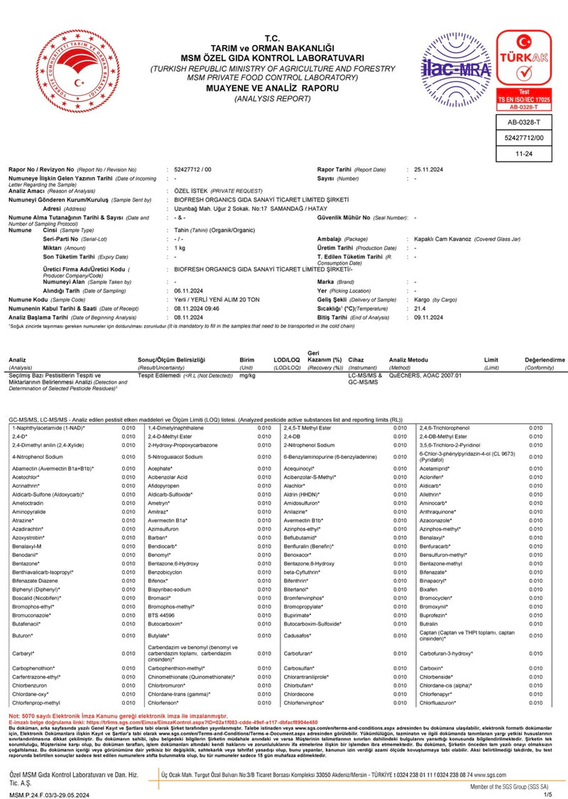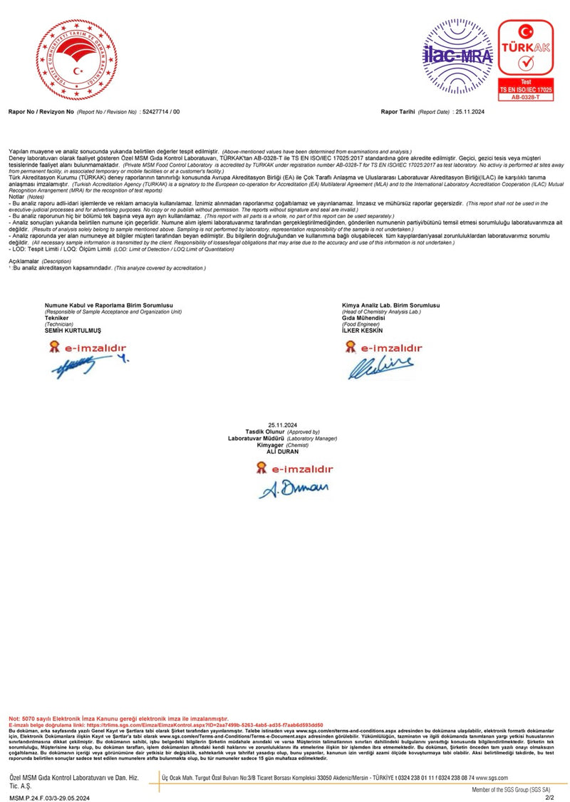 Ürünümüz; pestisit kalıntılarına karşı yapılan analizlerden başarıyla geçmiştir. İçeriğinde Chlormequat ve Mepiquat gibi kalıntılara rastlanmamıştır. Doğallığı ve güvenilirliği akredite laboratuvar onayıyla belgelenmiştir.
